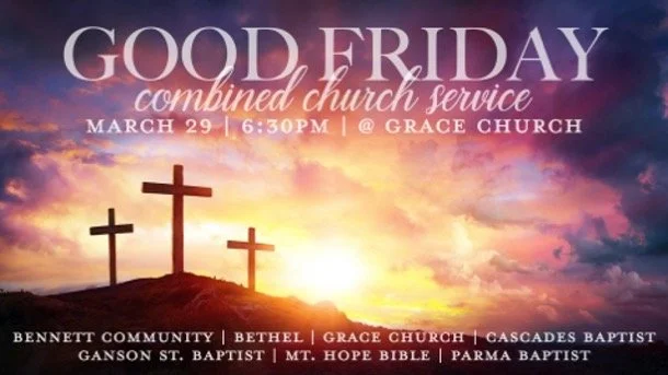 COMBINED Church Good Friday Service @ Grace Friday, March 29, 2024 6:30 PM 8:00 PM Google Calendar ICS